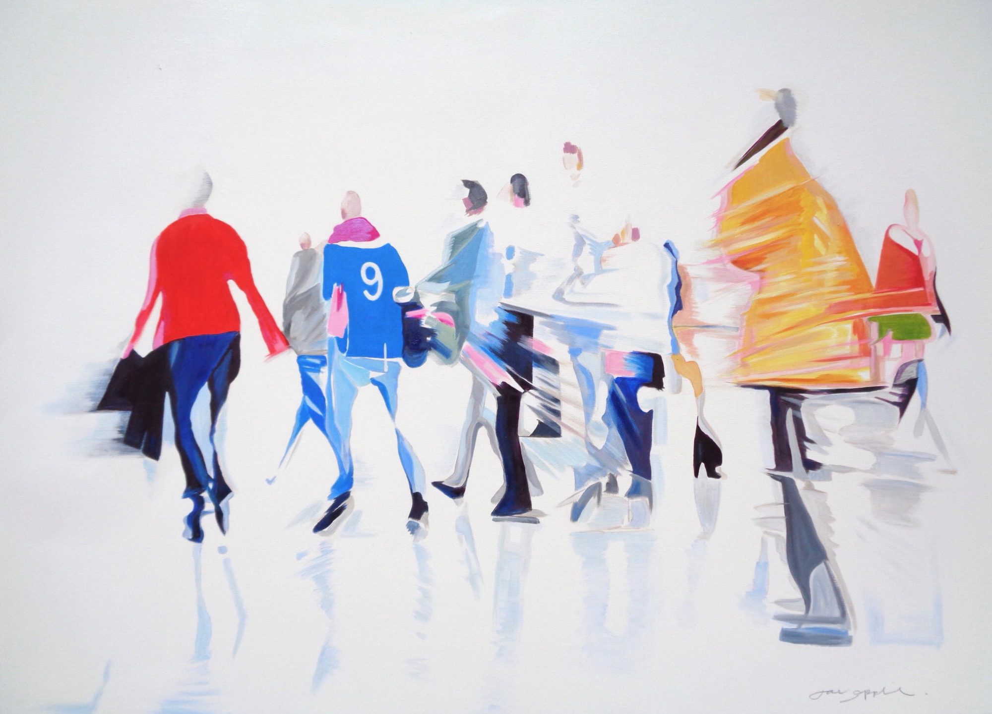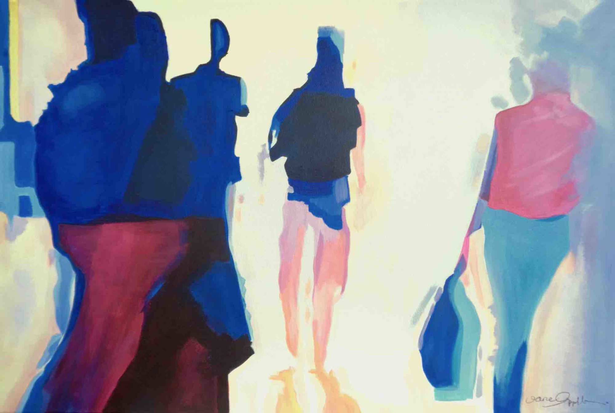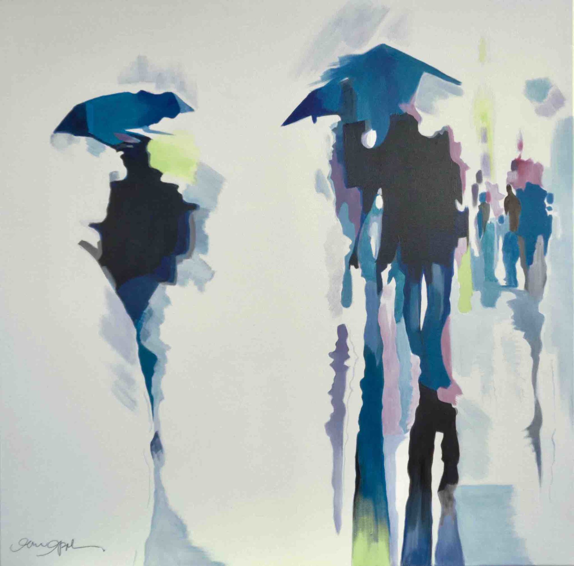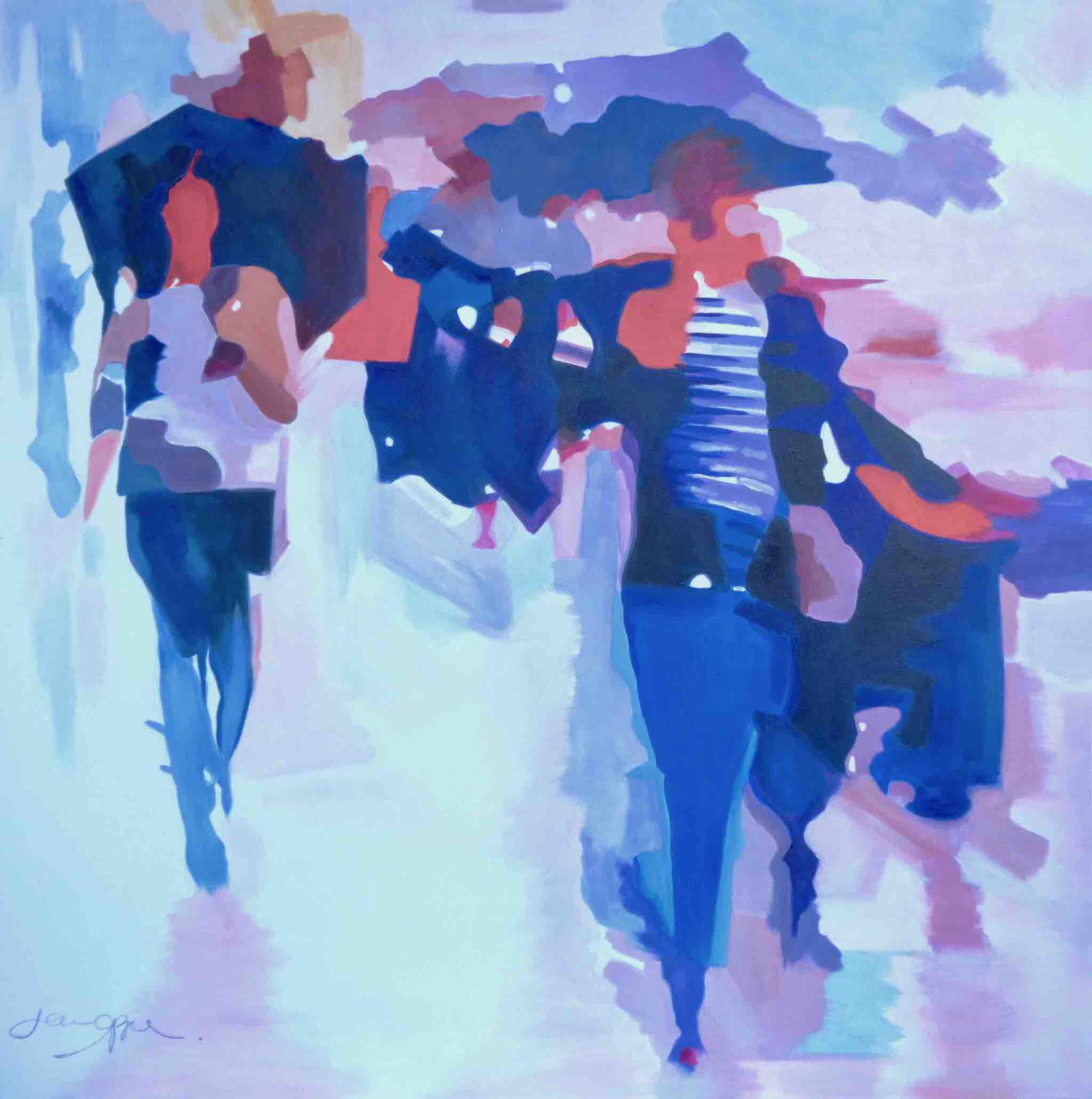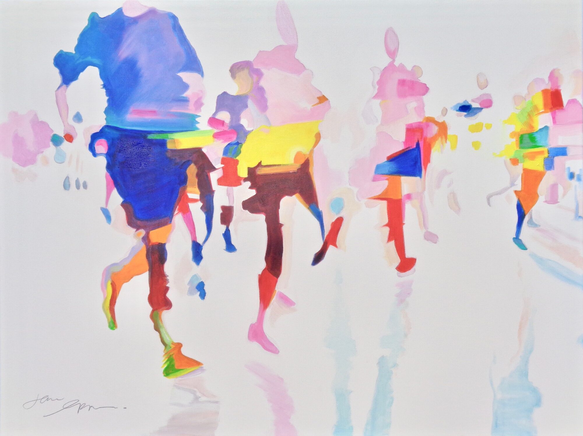 Recent works on canvas have been concerned with capturing a fleeting second in time. With the study of blurred motion, Jane expresses frozen movement. Combined with her love of colour, these lively, fresh pieces reflect a strong, dynamic spirit spilling onto the canvas. Works that are confident, daring, and full of optimism.
