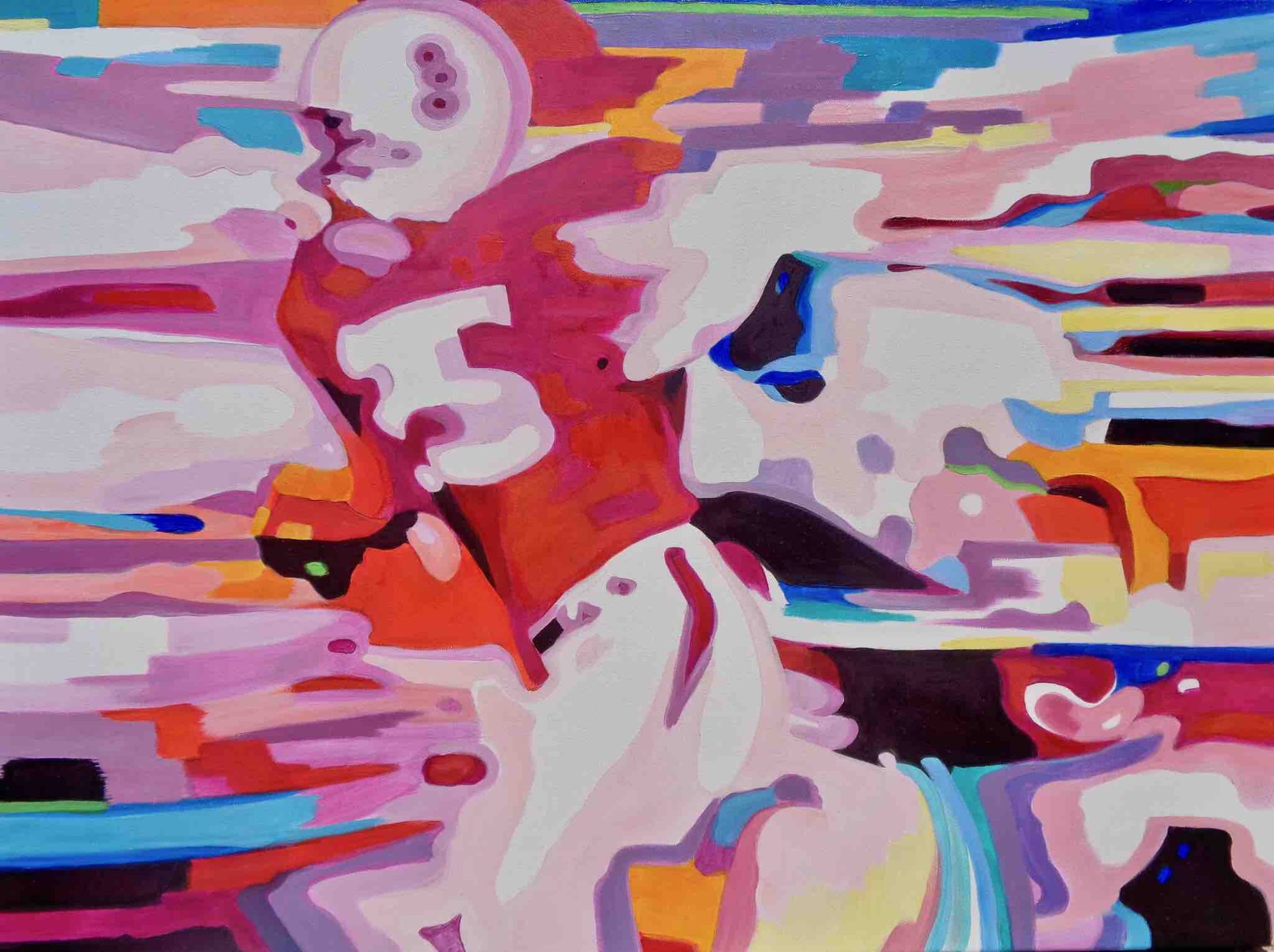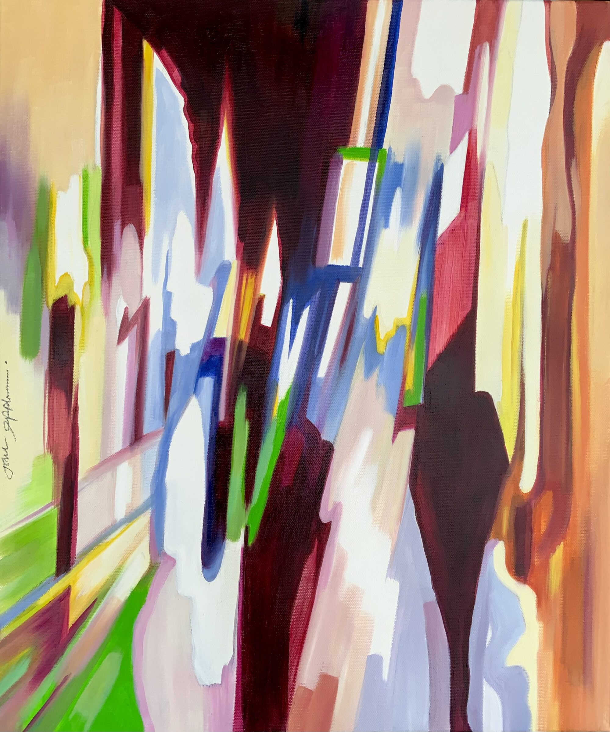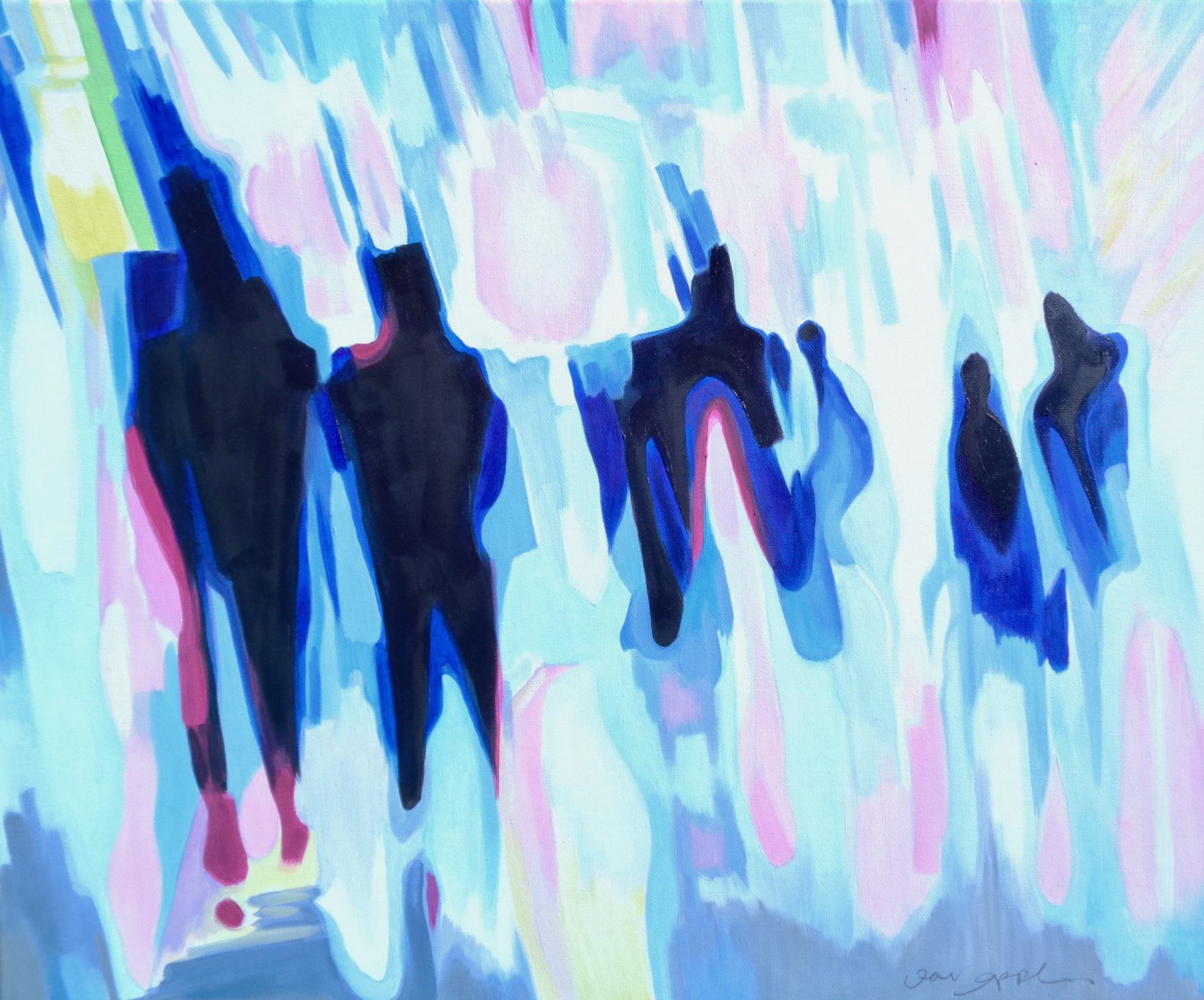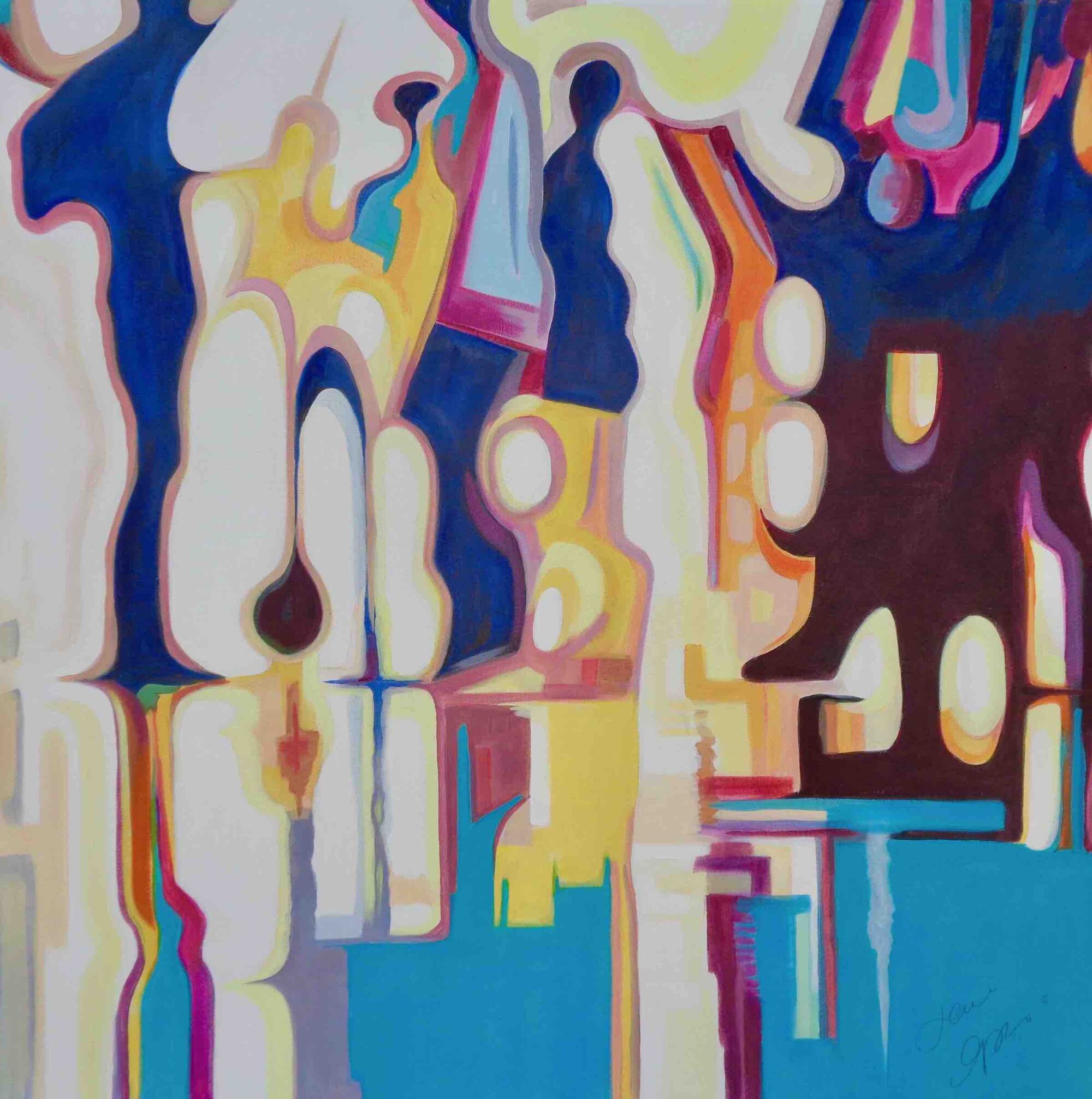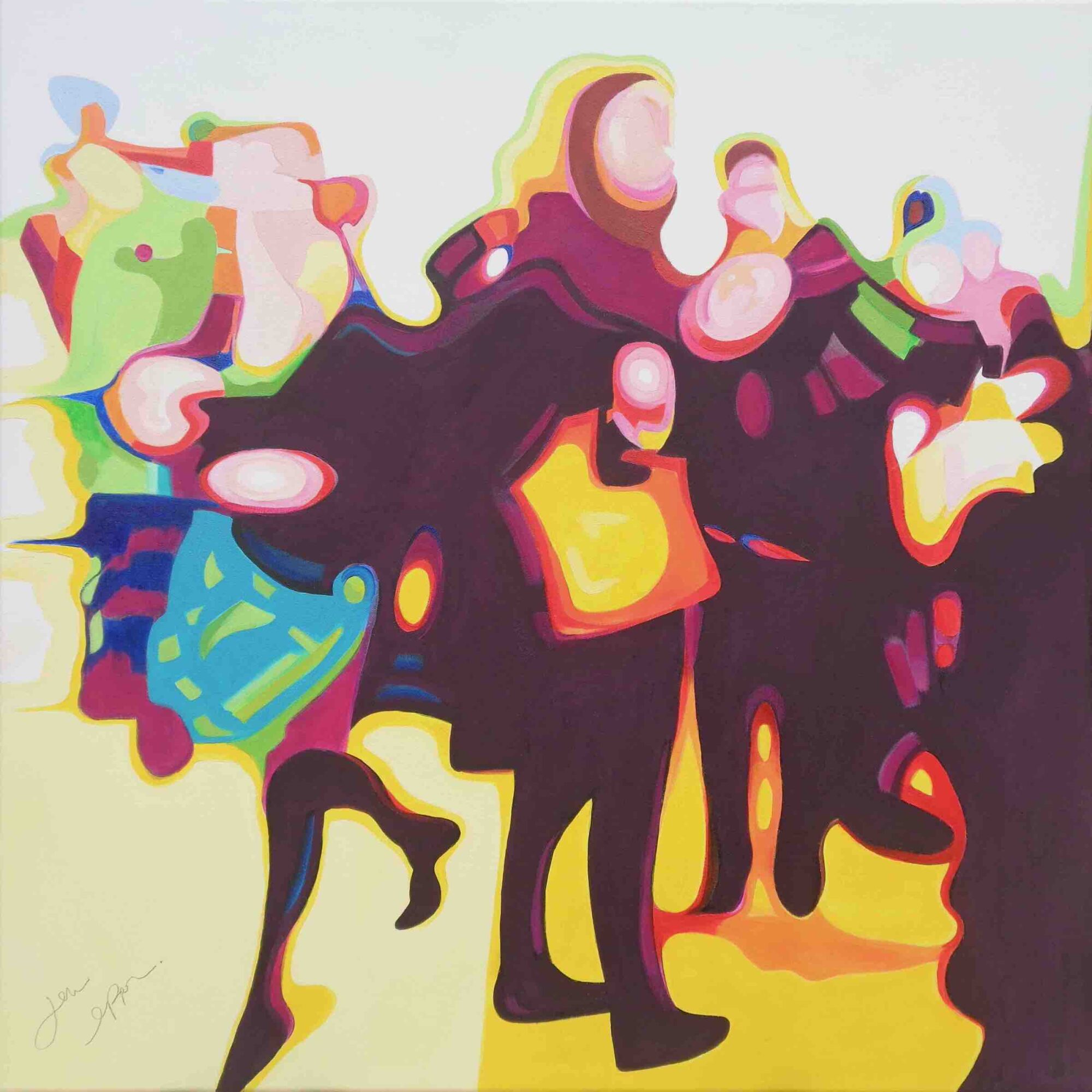 Recent works on canvas have been concerned with capturing a fleeting second in time. With the study of blurred motion, Jane expresses frozen movement. Combined with her love of colour, these lively, fresh pieces reflect a strong, dynamic spirit spilling onto the canvas. Works that are confident, daring, and full of optimism.